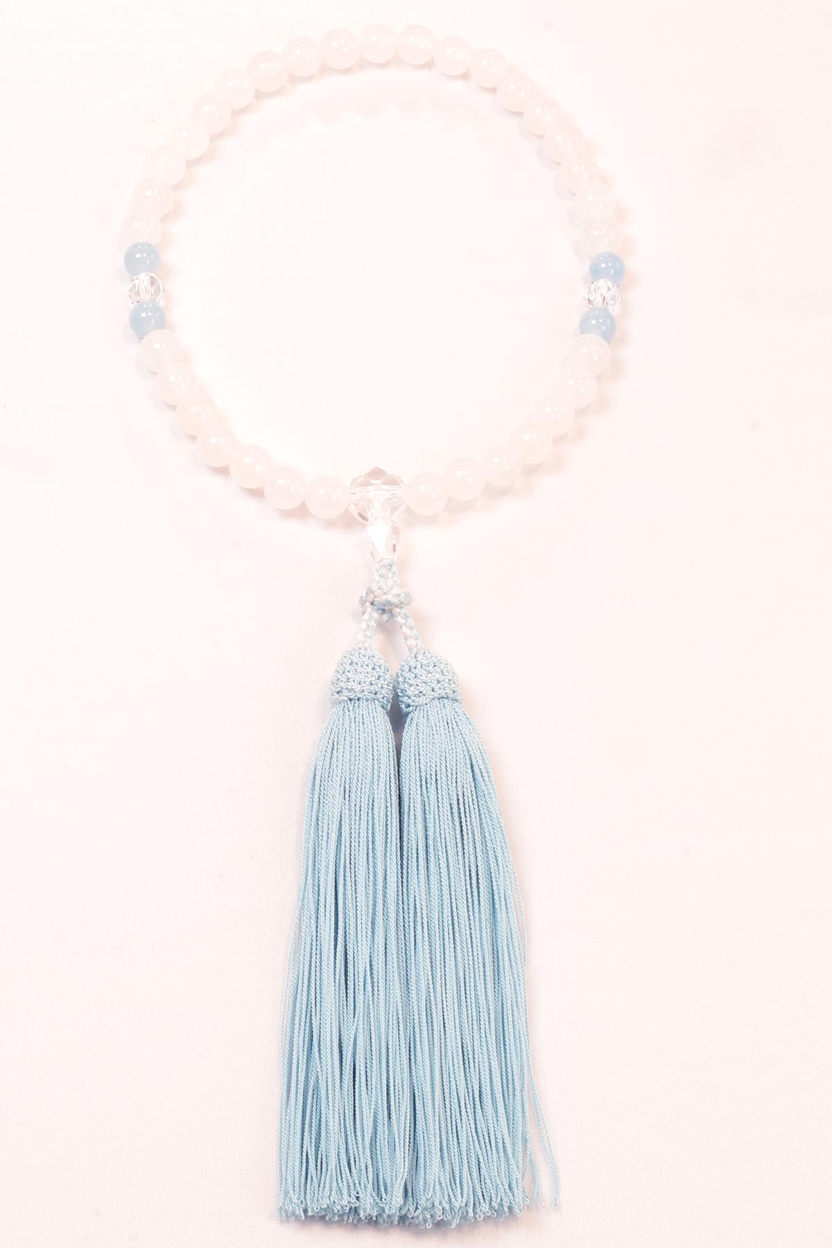 【二条】ホワイトカルサイト7mmアクアマリン片手正絹松風頭房