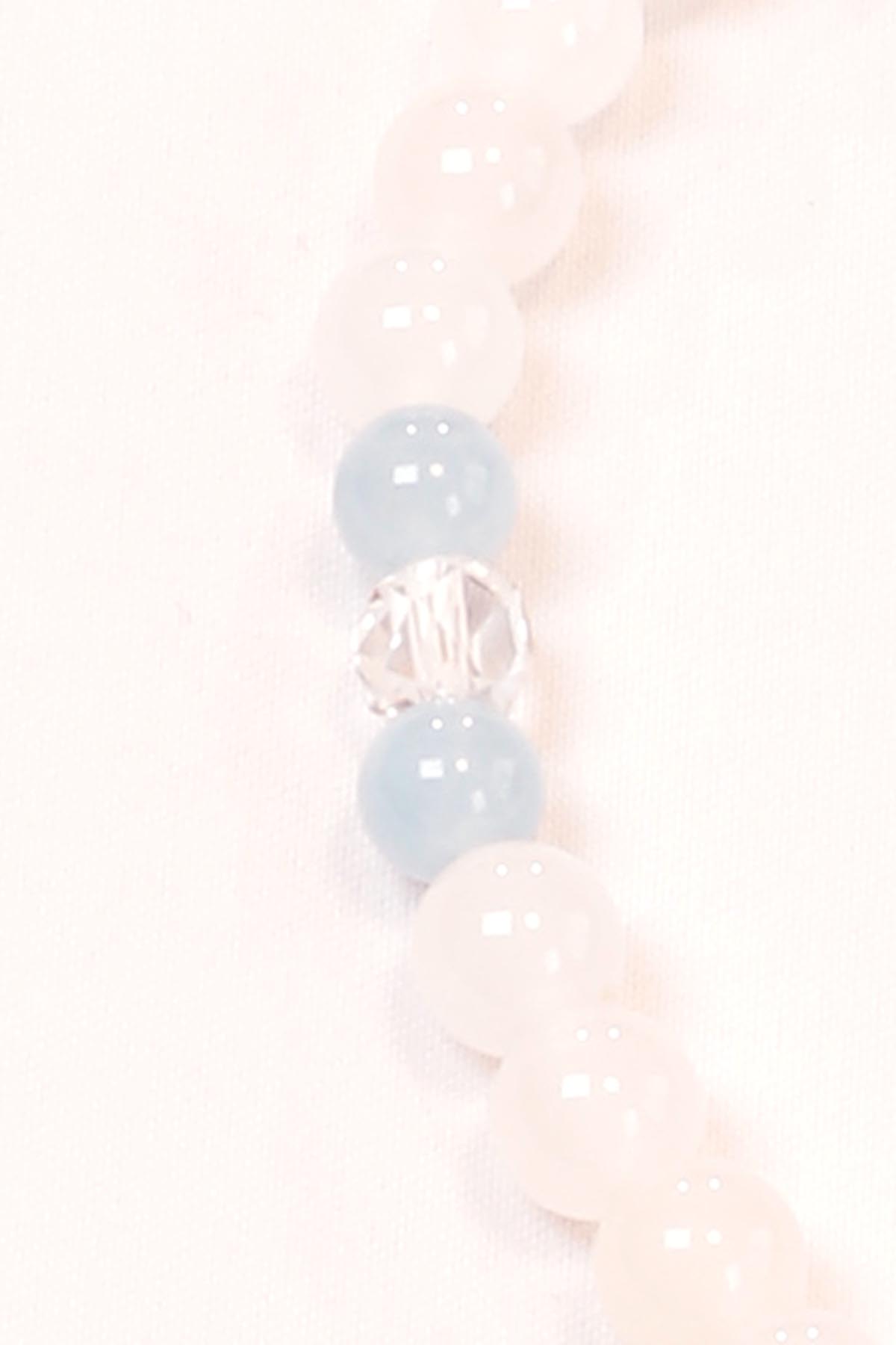 清らかなホワイトカルサイトに映える彩は、京の街並みに差し込む四季の光景を思わせ持つ人に爽やかな印象を与えます。親玉と二天玉には水晶切子を用い、清澄な輝きを添えました。