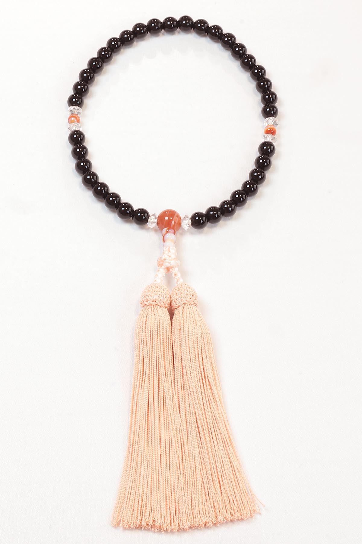 【BK-4】黒オニキス7mm縞メノウ仕立正絹松風頭房