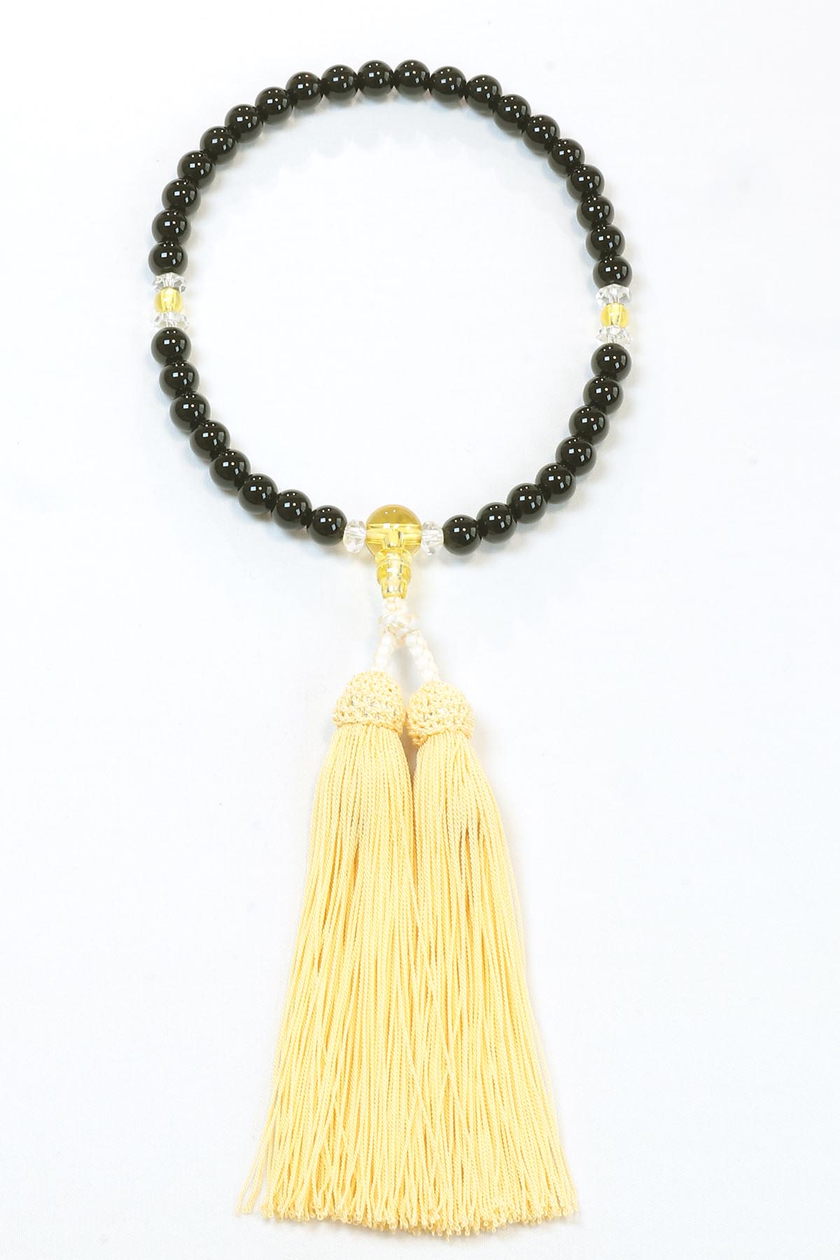 【BK-5】黒オニキス7mm黄水晶仕立正絹松風頭房