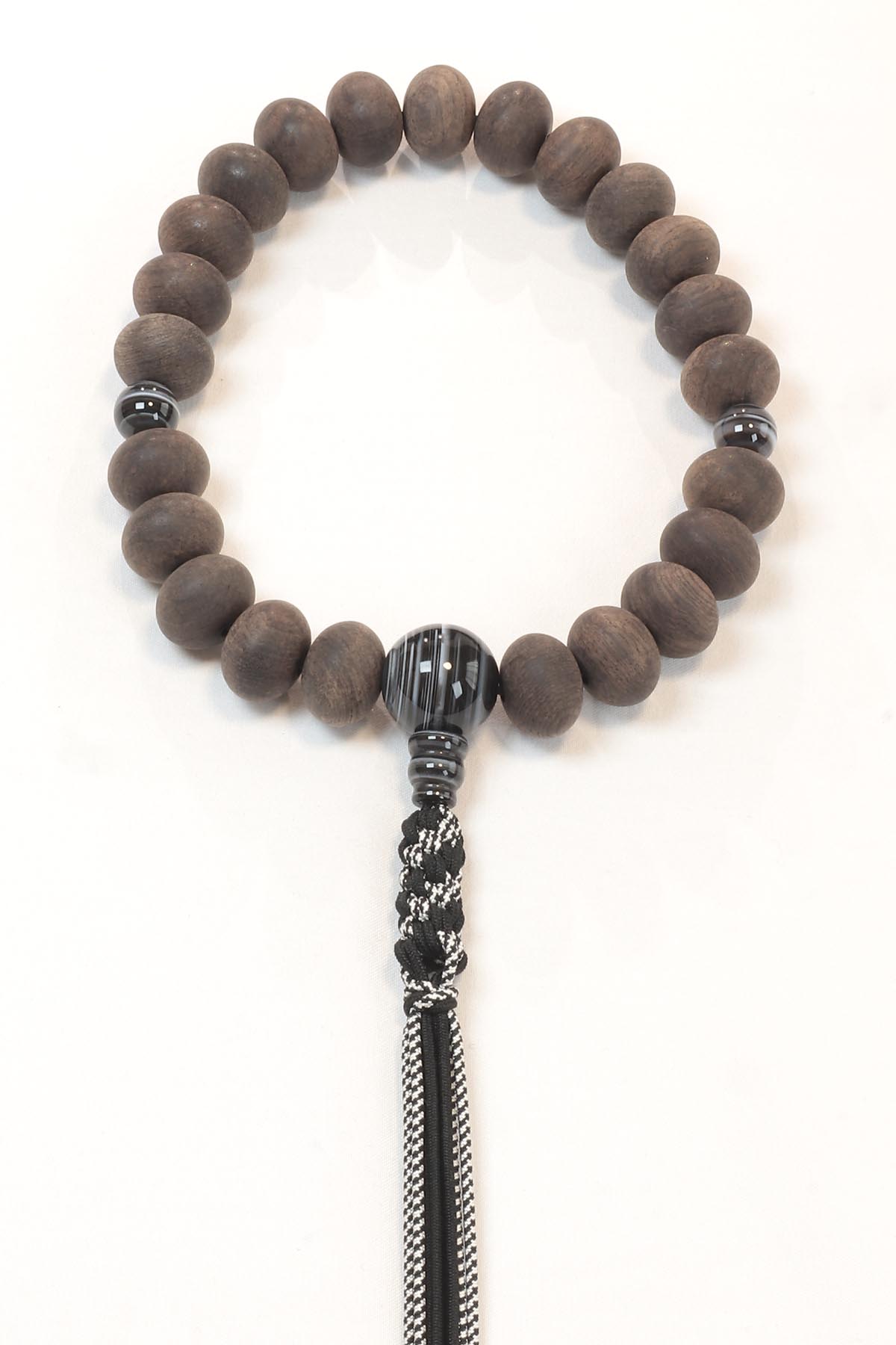 紐房をスパイラル上に編み上げた、個性的なデザインのお念珠です。