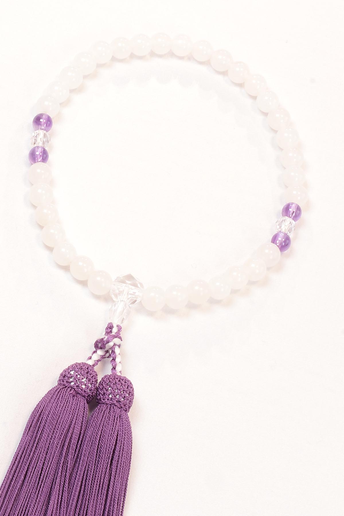 【二条】ホワイトカルサイト7mmローズアメジスト片手正絹松風頭房